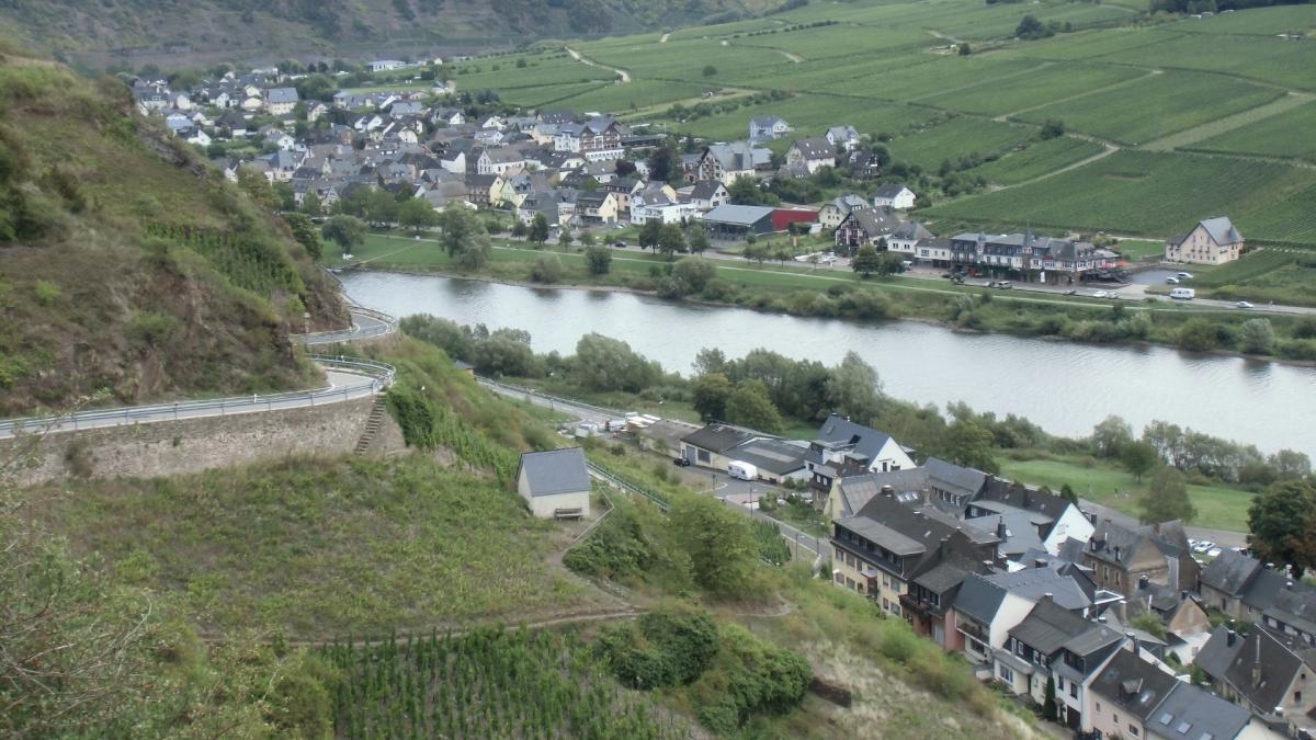 Höhepunkt auf dieser Tour war die Strecke von Valwigerberg nach Valwig. Zwei Kilometer durch Weinberge von 304 m runter auf etwa 90 m. Für Motorradfahrer aus Nordniedersachsen sind das schon ungewohnte Dimensionen. Unser Deich ist etwa 8 m hoch und sonst gibt es halt wenig was höher ist.