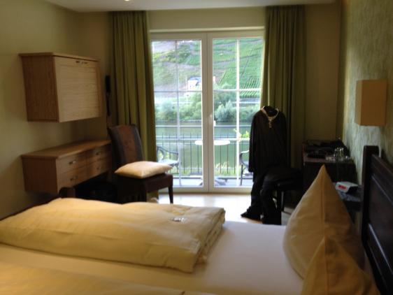 Die Laune steigerte sich noch als wir die neu renovierten, großzügigen hellen Zimmer mit Balkon und Blick auf die Mosel im ersten und zweiten Stock bezogen. |
