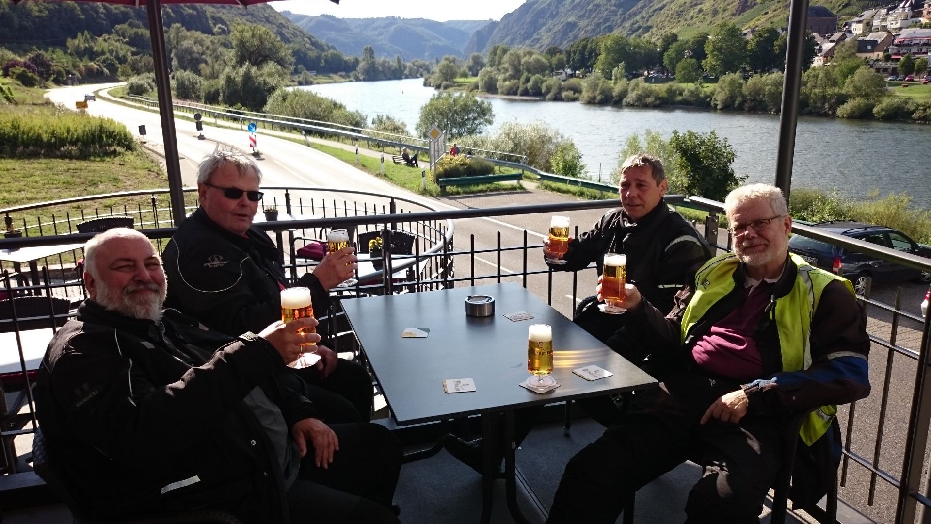 Wir hatten super gute Laune, Anreise ohne Probleme, super Wetter, top Sicht auf die Mosel und leckeres Bierchen in der Hand. |