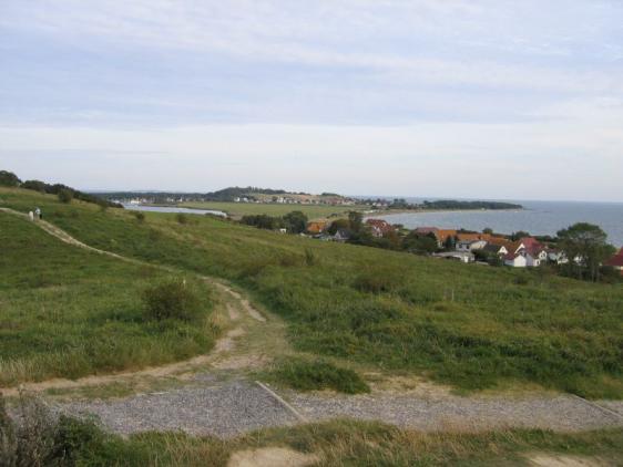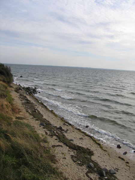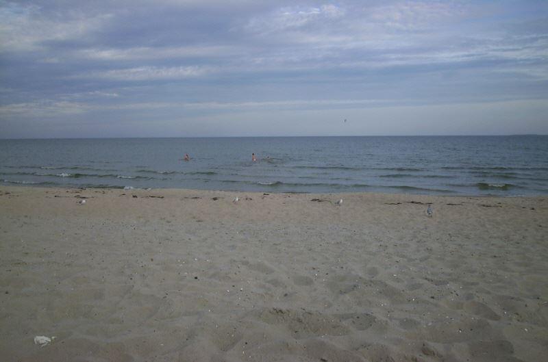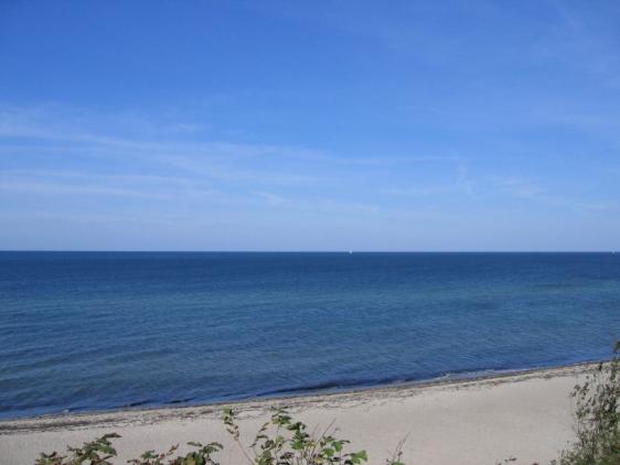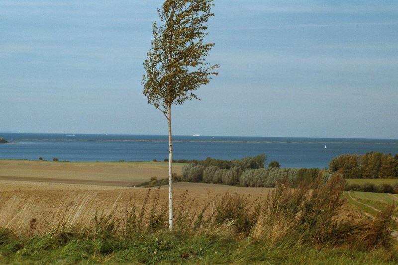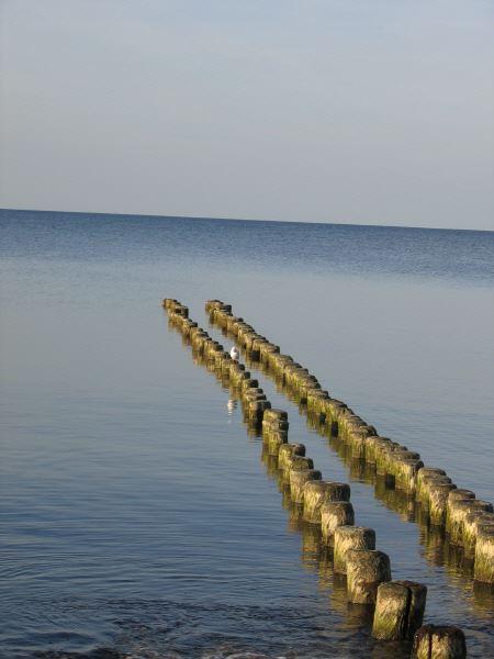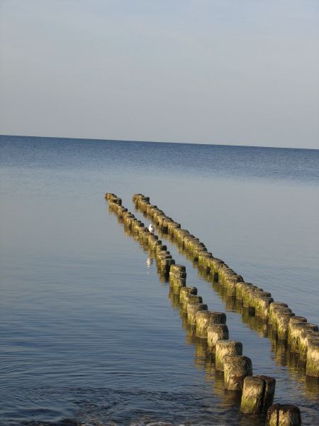 Dort standen ein Mercedes CLK und ein Audi Coupe demoliert auf dem Grünstreifen rechts neben dem Standstreifen. Nach den Reifenspuren zu urteilen, war der CLK von der rechten Spur über die Überholspur in die Mittelleitplanke gerutscht. Dort hatte er mehrere Pfosten der Leitplanke zerstört. Anschließend war er dann nach rechts über beide Fahrstreifen geschleudert, um im Seitenstreifen liegen zu bleiben. Was mit dem Audi passiert ist, war nicht nachvollziehbar. Wir mussten noch einige Zeit warten, bis die Vollsperrung aufgehoben wurde. Die Feuerwehr war gerade dabei die Fahrstreifen zu reinigen. Nach dem die Polizeibeamten die Autobahn wieder frei gaben, setzten wir unsere Fahrt bis zum Ende der Autobahn fort. Danach ging es weiter Richtung Stralsund. In Richtenberg legten wir eine Kaffeepause im dortigen Eiscafe ein. Wir genossen die Speisen und Getränke bei strahlendem Sonnenschein im Garten. Der Kuchen und der frisch gekochte Kaffee, haben mir sehr gut geschmeckt. Die Pause hatte uns gut getan. Erholt ging die Tour weiter. An der nächsten Tankstelle wurde noch ein Tankstop eingelegt. Ich war gerade von der Tankstelle aus in Richtung Stralsund abgebogen, als mir große Warntafeln ins Auge sprangen. Auf den Schildern wurde vor einem Unfallschwerpunkt gewarnt. Innerlich fragte ich mich gerade, was auf so einer schön ausgebauten Allee gefährlich sein sollte, als Bernd E. abbremste und seine Warnlichtanlage einschaltete. Ich machte es ihm nach. An einer Einmündung hielten wir erst einmal an. Von dort sah ich den Grund für den Stopp. Ein Ford Fiesta stand rechts neben der Fahrbahn an der Böschung. Beide Insassen waren gerade ausgestiegen. Auf der rechten Fahrspur stand ein weiteres Auto, dessen rechtsseitige Türen eingedrückt waren. Wie sich herausstellte, war der Fahrer dieses Wagens auf die Hauptstraße abgebogen ohne auf den vorfahrtberechtigten Verkehr zu achten. Der Unfall wäre sicherlich nicht so glimpflich abgelaufen, wenn der Fahrer des Ford Fiestas nicht so gut reagiert hätte. Bernd E. und Norbert befreiten noch die Beifahrerin aus dem Wagen des Unfallverursachers. Da alle Türen verklemmt waren, mussten Bernd E. und Norbert ihre ganze Kraft aufwenden, um die Beifahrertür zu öffnen. Nach dieser Befreiungsaktion wurde unsere Hilfe nicht mehr benötigt. Also setzten wir unsere Reise fort. Stralsund war schnell erreicht. Über den Rügendamm fuhren wir über Samtens, Bergen und Lietzow nach Sagard. In Sagard bogen wir Richtung Glowe ab. Glowe liegt auf der Schaabe zwischen dem Tromper Wiek und dem Großen Jasmunder Bodden. Dort angekommen, gingen wir an den Strand. Es war absolut windstill. Die Sonne schien immer noch warm, obwohl schon ein Hauch des Herbstes zu spüren war. Das Wasser der Ostsee lag spiegelglatt vor uns. Auf einer Wellenbrechanlage aus Pfählen sonnte sich eine Möwe.