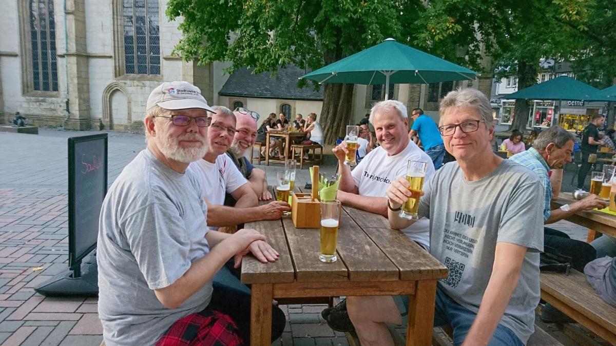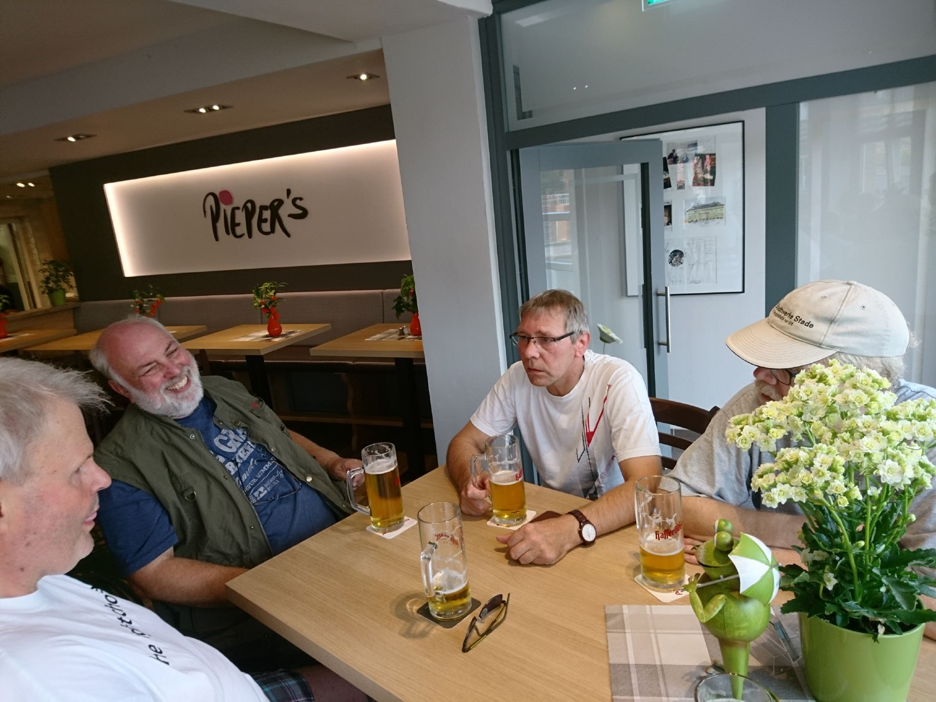 Am ersten Abend haben wir das Restaurant, "Das Schwarze Schaf" direkt am Jakobikirchhof gefunden. Bei tollem Wetter haben wir draußen vor dem Lokal Platz genommen und sehr schmackhafte Speisen genossen. Die Bedienung war außerordentlich freundlich, aufmerksam und humorvoll, genau dass, was eine Gruppe älterer Herren am ersten Abend einer längeren Motorradtour zur Einstimmung gebrauchen kann. Es hat super gepasst. |
