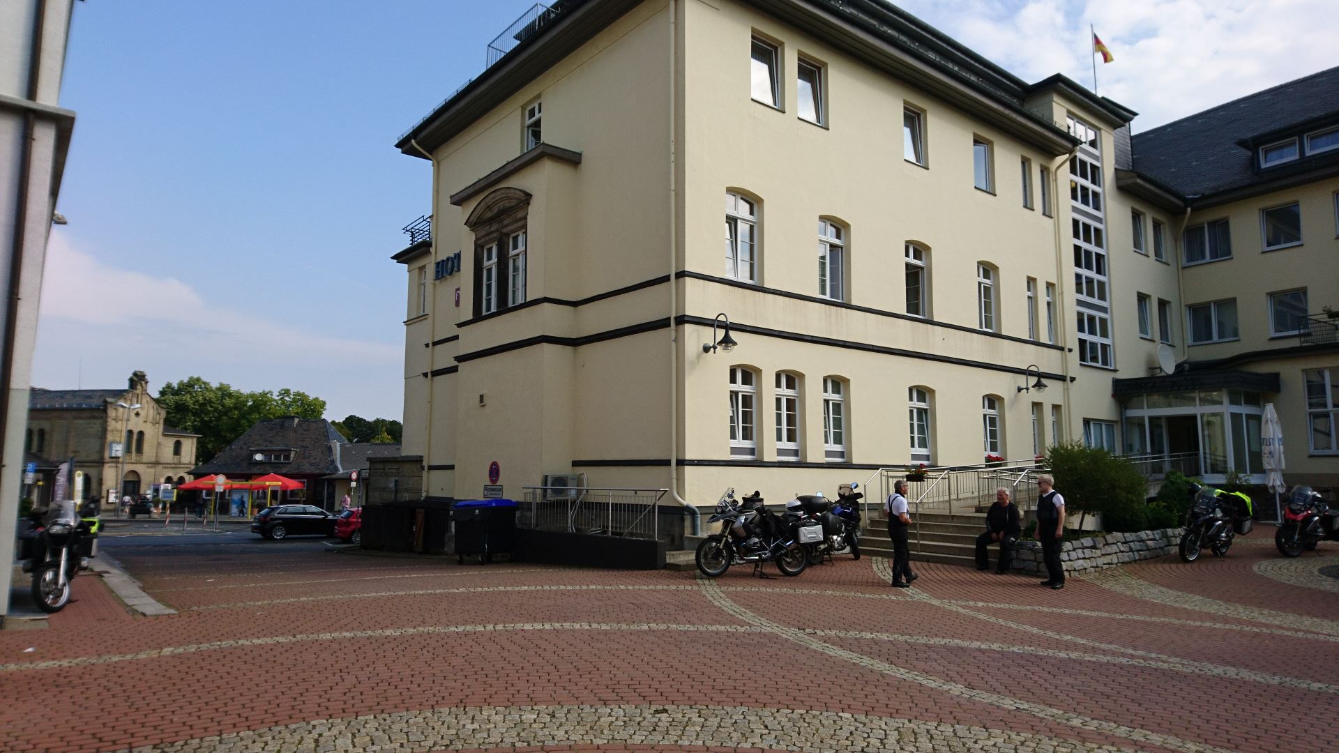 Abfahrt am Mittwoch, das Wetter meint es meistens gut mit uns. Bis auf einen kleinen Schauer bleibt es auf unserem Weg zum ersten Etappenziel, Goslar im Harz, sonnig. Auf kleinen und kleinsten Straßen erreichen wir trocken das Hotel "Niedersächsischer Hof". Die Zimmer sind großzügig und hell. Das Preis Leistungsverhältnis stimmt. Der größte Magnet für uns ist jedoch das sehr reichhaltige Frühstück. In der Regel fahren wir am Tag nach der Nacht in Goslar, auf Landstraßen über den Kyffhäuser und dann eine Etappe auf der A7 in Richtung Bayern. Wir sind Fans des Hotels und schätzen diesen ersten Stopp auf unseren jährlichen Touren in Richtung Süden. |