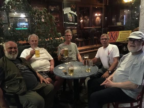 Als das Restaurant schloss fragten wir nach einem Lokal in der Nähe das noch geöffnet sei. Empfohlen wurde uns die "Musikkneipe Kö". Wir machten uns dann auf den Weg, der uns erstaunlich weit vorkam. Laut Plan mussten wir nur 400 m zurücklegen, wir haben wohl einen Umweg gefunden. Als wir das Lokal erreichten hatten wir jedenfalls schon wieder Durst. Im Lokal angekommen nahm der Abend sogar noch mehr Fahrt auf, wir konnten unser Glück kaum fassen, in dem Lokal stand ein Kicker. |