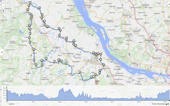 Die Rückfahrt habe ich über Cadenberge und von Geversdorf niach Oberndarf am Ostedeich entlang geplant. Ehrlich, eine der wenigen kurvigen Strecken in der Region. |