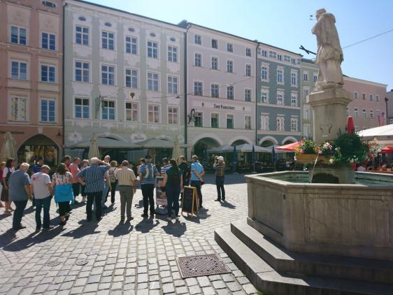 Nachdem wir in Niedersachsen auf ein Buffet zum Frühstück verzichten mussten, durften wir hier, wie auch schon in Weiden, ein Frühstücksbuffet genießen. Das Frühstück war hervorragend und stärkte uns für den Tag, der mit einer "Rosenheim-Cops Stadtführung" für uns begann. Die Teilnahme an der besonderen Führung war im Hotelpreis inbegriffen. Volker war der Einzige aus unserer Runde, der die Serie "Rosenheim Cops" noch nicht kannte. Bin gespannt ob er diese "Bildungslücke" mittlerweile geschlossen hat. :-) |