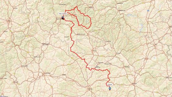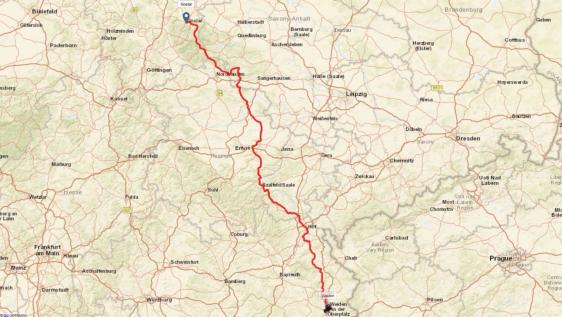 Wir haben die Mopeds abgeladen und, Bernd E., Volker und ich haben dann noch eine Runde durch den Thüringer Wald gedreht. Die 150 km führten uns über Suhl, Erlau, Schleusingen in Richtung Masserberg. Über Neustadt am Rennsteig auf der L1137 und L1141 zur L2632 nach Schmücke. Auf der L1129 in Richtung Oberhof und über die L3247 nach Zella-Mehlis und dann weiter zurück nach Rohr. |