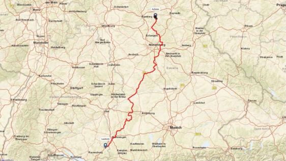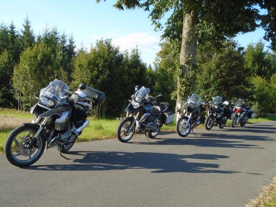 Aufbruch zu einer Tagestour durch Oberfranken. Der Planer der Tour hat auch die beiden Häkchen vergessen. Wir sind zwar nur erlaubte Wege gefahren doch landeten wir auf Schotter, auf Sandwegen durch Wälder und Plattenwegen durch Felder. Fahrerisch zum Teil kleine Herausforderungen, ausreichend um den Blutdruck steigen und den Flüssigkeitshaushalt sinken zu lassen. Es waren abwechslungsreiche 190 km in Richtung Nordosten. Der Skywalk am Erlebnisfelsen Pottenstein ist für Leute ohne Höhenangst bestimmt ein sehr lohnendes Ziel. Wir haben es nur von unten, von der Straße aus betrachtet und waren davon und von dem Anblick der Burg Pottenstein schwer beeindruckt. |