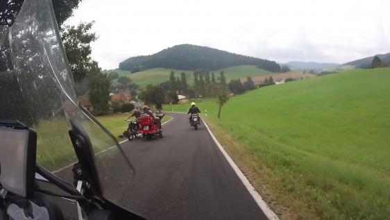Leider hatten an diesem Sonnendurchfluteten Sonntag extrem viele Leute auch die Idee ein wenig durch die schöne Landschaft zu cruisen. Das führte zu kilometerlangen Staus in Ortschaften mit engen Durchfahrten und schlug uns mächtig auf die Laune. Einige Motorradfahrerkollegen haben durch Harakiri-Aktionen die Stimmung gegen die Motorradfahrer-Gemeinschaft wieder richtig befeuert. Schade, diese Blindplinsen ballern ein zwei Jahre auf den Straßen rum, bis zum ersten Unfall oder weil dann Kinderwagenschieben angesagt und wichtiger ist. Den Leuten, die seit über 40 Jahren Motorrad fahren und dieses Hobby gern noch weiter genießen wollen, hinterlassen diese Hirnis einen Wald von Verbotsschildern für Motorradfahrer. |