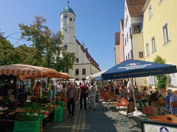 In Dingolfing haben wir im Eiscafé Verona eine Pause eingelegt und den Marienplatz bewundert. Der Stadt kann man den Wohlstand ansehen. Vermutlich ist das riesige BMW-Werk und die daran hängenden Arbeitsplätze der Grund dafür. Der Inhaber des Cafés hat uns ein paar beeindruckende Zahlen zu den Werken geliefert und uns etwas an seinen Überlegungen zu den Folgen von Corona teilhaben lassen. Er hat das Gefühl, dass die Gäste seit Corona aggressiver geworden sind. Er fand viele Gäste vor Corona entspannter und zufriedener. Wir wünschen ihm, dass seine Gäste wieder zu ihrem entspannten Genuss seiner leckeren Eissorten finden. |