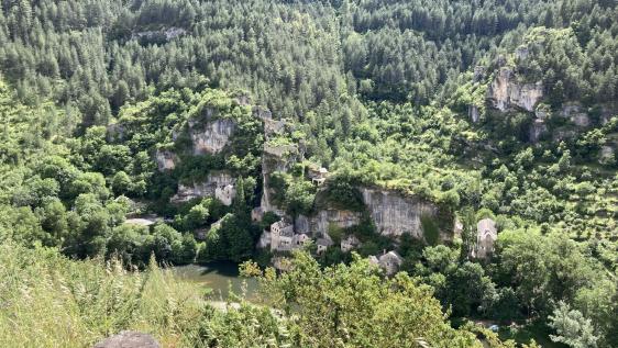 Ich folgte der Straße direkt am Tarn entlang auf den ich leider nur gelegentlich einen Blick werfen konnte. An einem Aussichtspunkt habe ich dann in die Schlucht geblickt und die an die Felswand gebauten Häuser bewundert.