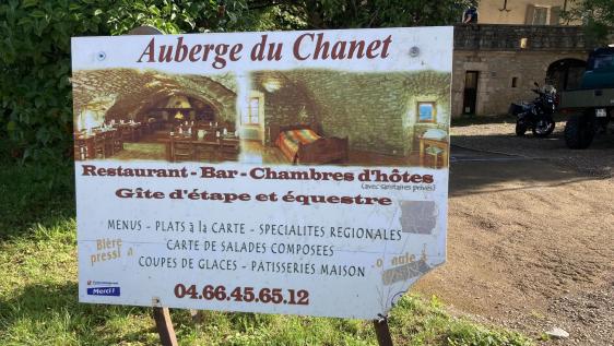 Ich genoss mein erstes französisches drei Gänge Menü und lernte eine Gruppe Wanderer kennen. Die Herren waren deutlich jenseits von 70 Jahren alt und wanderten schon seit Tagen durch die Cevennen. Sie sprachen eine Mischung aus Deutsch und Französisch. Ich erfuhr das sie aus dem Elsass kamen und mit diesem Sprachengemisch aufgewachsen seien. Einer der betagten Männer ließ sich vor meinem Motorrad fotografieren, um seiner Frau zu signalisieren was er sich zum nächsten Vatertag als Geschenk wünscht.