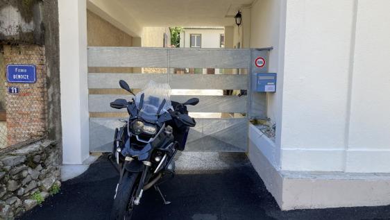 In Ax-les-Thermes suchte ich erst so nach einem Hotel, fand jedoch keines das mich auf Anhieb ansprach. Auf einem Parkplatz am Ortsausgang traf ich auf eine Gruppe junger Moped- und Motorradfahrer aus dem Ort. Ich habe, mit Händen und Füßen, deutlich gemacht, dass ich ein Hotelzimmer suche. Ein Mopedfahrer signalisiert ich solle ihm folgen. Er brachte mich zu einem Hotel und organisierte einen abgeschlossenen Abstellplatz für mein Motorrad. Perfekter Service.