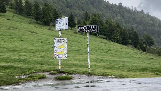 Hier ein trostloses Foto vom Col d Aspin mit seinen 1489 m Höhe. Er ist zwar nicht hoch doch durch die Tour de France und seiner schönen Auffahrt bekannt und beliebt. An diesem Tag schienen sich alle Anwesenden nur vor dem Regen und dem Wind zu ducken und hatten eher das Bedürfnis diesen unwirtlichen Ort zu verlassen. So sahen die Wanderer jedenfalls aus als sie zielstrebig in den zur Abholung bereitgestellten Bus sprangen.