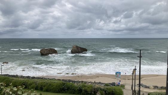Hier erhaschte ich den ersten Blick auf den Atlantik, vorbei am "Hôtel du Palais Biarritz". Es herrschte dichter Verkehr in den teilweise engen Gassen.