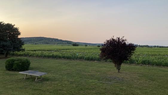 Am Morgen strahlte mir die Sonne vom wolkenlosen Himmel entgegen, das Frühstück konnte ich auf der Terrasse zu mir nehmen, es war angenehm warm und ich genoss den Blick in die Weinberge, die sich in drei Himmelsrichtungen von dem Hotel erstreckten.