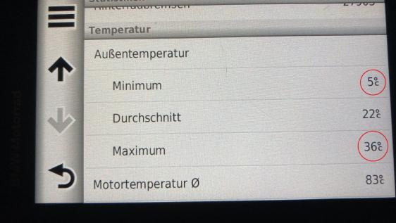 Mein Navi hatte ich vor der Tour leider nicht resettet, die Temperaturen waren jedoch von dieser Tour. An den ersten und letzten Tagen war es sehr warm, auf dem Weg vom Mittelmeer nach Ax-les-Thermes bin ich bei 5 Grad über den Pass und durch Regen und Hagel gefahren.