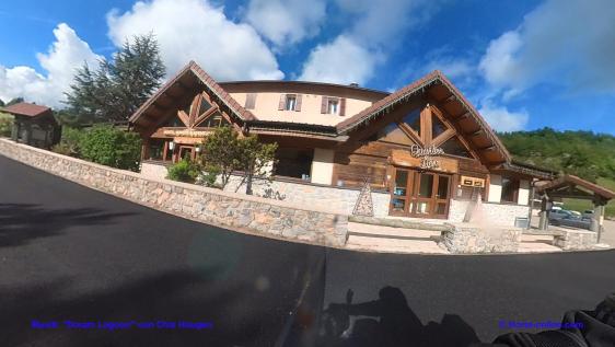 Mein Motorrad musste nun noch von der Straße auf den Parkplatz des Hotels. Dieser war frisch mit Kies aufgefüllt. Aus dem Grunde hielt ich es für sicherer das Motorrad zu schieben. Es ging leicht Bergab und das Moped rollte locker voran in Richtung Garten. Ich wollte das Motorrad dann rückwärts in eine Parklücke schieben. Die Betonung liegt auf wollte, als ich am Lenker zog, bewegte sich der störrische Esel keinen Millimeter in die gewünschte Richtung. Ok, dachte ich es ist halt zu schwer und gräbt sich in den frischen Kies zu tief ein. Lösungsansatz, Gepäck abladen, muss ja eh passieren. Also habe ich im Regen das Gepäck abgeladen und an der Hauswand gestapelt. Neuer Anlauf, gezogen, geschoben, gezerrt und gerissen, keinen Millimeter Raumgewinn in die richtige Richtung. Für eine Wende mit Motorkraft war ich leider zu nah an den Nutzgarten gerollt. Aussichtslos, ich brauchte Hilfe. Ich schleppte meine Sachen ins Hotel und traf dort auf drei Schweizer, frisch geduscht, in Badelatschen beim Biertrinken. Ich schilderte kurz meine missliche Lage und erntete Verständnis. Den Herren war es mit Ihren Mopeds ebenso ergangen. Die Hilfsbereiten Herren kamen in Badelatschen mit raus in den Regen und halfen mir mein Moped einzuparken. Ich revanchierte mich mit der einen oder andern Bierrunde.