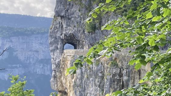 Mich überraschte eine Straße, die sehr viel Ähnlichkeit mit der am Morgen befahrenen Straße im Vercors hatte. Steile Felswände auf der einen Seite, eine Schlucht auf der anderen. Zwar nicht so tief aber ebenfalls beeindruckend.