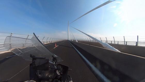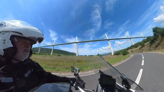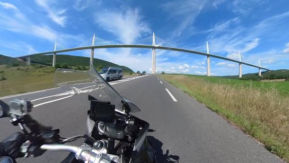 Ich startete bei Sonnenschein, mein erstes Ziel war die Brücke "Viadukt von Millau". Als ich auf die Brücke fuhr, zog eine Wolke von der Seite auf mich zu. Plötzlich befand ich mich mittendrin. Es wurde kalt und die schöne Fernsicht war Geschichte. Dichter Nebel umgab mich, genau bis zum Ende der Brücke, dumm gelaufen.