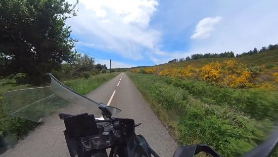 Vor vielen Jahren war ich mit meiner damaligen Freundin und jetzigen Ehefrau als Sozia, sie hat den Reiz des Selberfahrens erst später entdeckt, in der Auvergne unterwegs. Solche Ginsterbüsche am Wegesrand haben wir damals bestaunt. Meine Erinnerungen kehrten dorthin zurück.