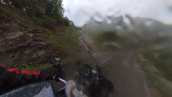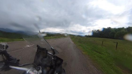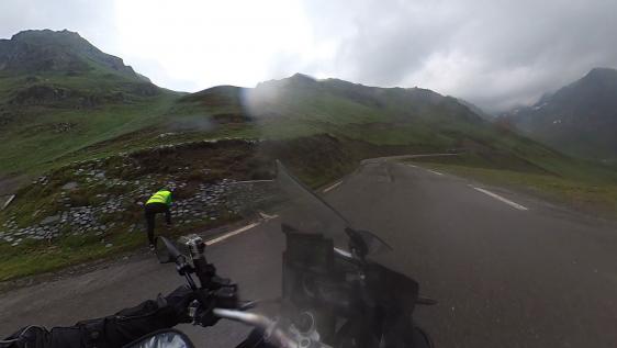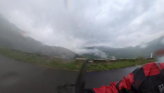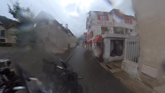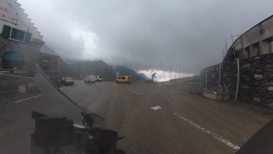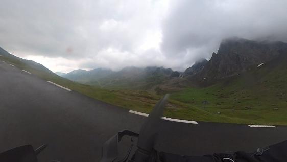 Ich überfuhr den Col de Pailhères ohne es zu merken. Zu dem Zeitpunkt war die Temperatur auf 5 Grad gesunken und in den Starkregen mischte sich zeitweise Hagel. Ich habe auf dem Pass nur einen Motorradfahrer wahrgenommen, der mir entgegenkam. Auch so ein Verrückter in meinem Alter.