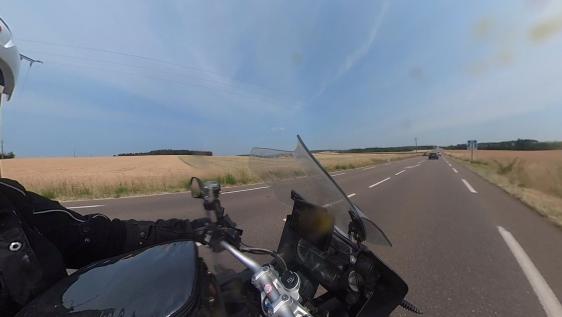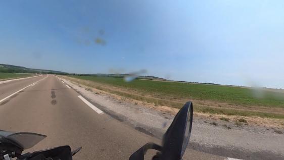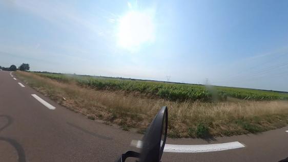 Obwohl das Wetter sehr gut war, habe ich kaum Foto oder Filmmaterial von diesem Reisetag. Auf der Linse meiner Kamera klebten die Reste eines großen Insekts, das will niemand sehen. Bleibt mir nur von den Eindrücken zu berichten. Die Landschaft war sehr eben, Ich konnte weit sehen, während ich durch Getreidefelder und Grünland fuhr.