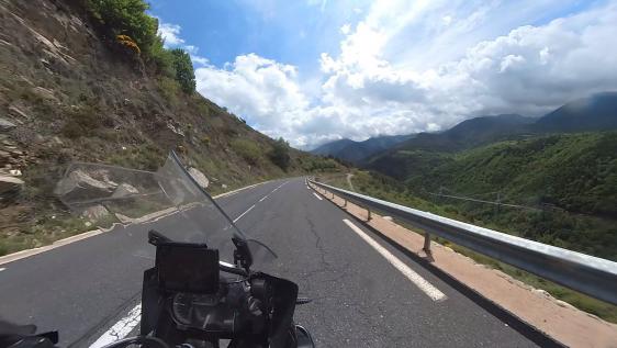 Gleich nach dem Tankstopp verließ ich die N20 um auf die D44 abzubiegen. Die Straße war so schmal, das ich glaubte falsch abgebogen zu sein. Das Wetter und die Aussicht waren filmreif. Die Straße und später auch die D20 führten in größerer Höhe am Berg entlang und ließen einen weiten Blick auf die gegenüberliegenden Berge und in die Täler zu. Ein Vorgeschmack auf die vor mir liegenden Pässe setzten Endorphine und Ihre Freundinnen frei.
