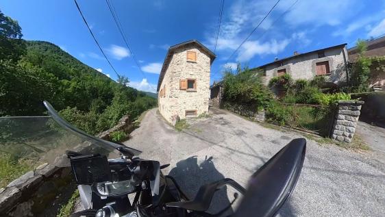 Manchmal führte die schmale Straße so nah an Häusern vorbei das ich befürchtete auf einem Grundstück zu landen. Mein Navi hatte Probleme die schmalen, zum Teil, durch den Höhenunterschied, so nahe beieinander liegende Straßen richtig darzustellen. Ich bin mehrere Male falsch abgebogen und musste wenden. Ich habe jedoch keinen Umweg bereut, ein Einblick in die Ortschaften oder in die gepflegten Obstgärten haben mich entschädigt.