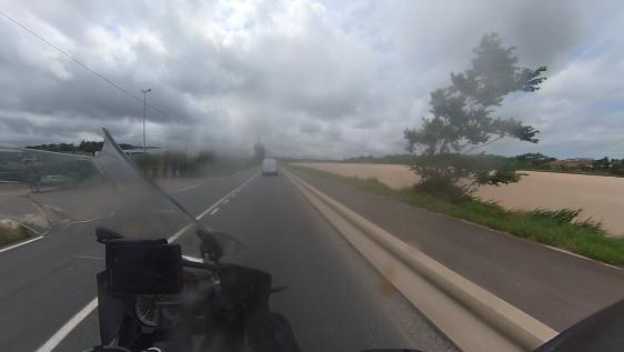 Nach einigen Kilometern überholte ich das Pärchen erneut. Dieses Mal haben sie nur gestoppt um die Regenklamotten anzuziehen.