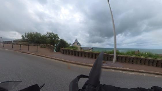 Im Süden des Ortes fand ich dann eine geeignete Stelle am "Plage d'Ilbarritz". Es war windig und kühl, Badegäste konnte ich hier nicht entdecken. Bei gutem Wetter wird hier sicherlich der Bär steppen. So hatte ich das Glück mein Moped einfach mal am Rande eines Kreisels abstellen zu können, um ein Paar Fotos zu schießen.