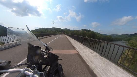 Ich genoss dann meine Weiterfahrt auf sehr kleinen Straßen und traf auf ein deutsches, Motorradfahrendes Pärchen in Nöten. Die Dame hatte ihre GS auf einer kleinen Brücke beim Versuch ein Foto zu schießen auf die Seite gelegt. Sie passte gerade zwischen Motorrad und Brückenmauer, doch war kein Platz um das Motorrad zum Aufrichten vernünftig zu greifen. Ich kam gerade rechtzeitig um bei der Bergung zu helfen. Der Dame ging es gut, nur die GS hatte sich um ein paar kleine Anbauteile erleichtert.