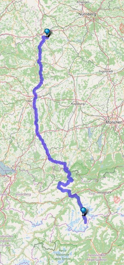 Laut Tyre sind es nur 369 km, doch die hatten es in sich. Schöne Pässe, mit herrlichen Aussichten, auf denen sich die Zeit jedoch zu dehnen scheint, auch weil wir die eine oder andere Fotopause einlegten. Auf der Strecke in Richtung Meran war auch deutlich viel Verkehr. |