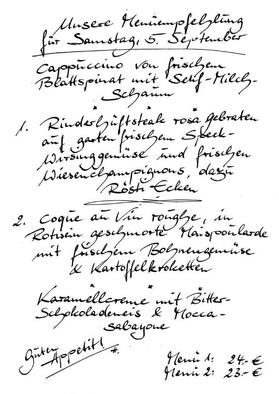 Bernd hatte die letzten beiden Stellen der Postleitzahl vertauscht, anstatt 56814 stand 56841 auf dem Zettel und das hatte Jürgen in sein Navi eingegeben. Nun mussten wir noch etwas länger auf unser Abendessen warten...