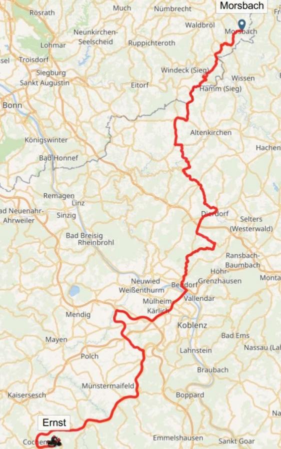 Bernd P. wollte als letzter in der Gruppe fahren. Irgendwo ist er dann von der Hauptstraße abgebogen, hat uns verloren. Da wir das nicht kommunizieren konnten bin ich, weil ich noch am meisten Sprit im Tank hatte, die Strecke bis zum letzten Halt hochgefahren um Bernd zu suchen. Irgendwann kam dann die Nachricht "Habe Euch verloren Fahre nach Zittau". |