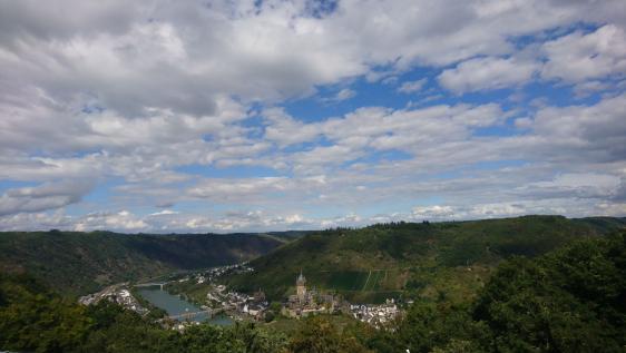 Nun zu unserem Fotoshooting. Wir legten einen Stopp auf dem Parkplatz an der B 259 ein, von hier hat man einen tollen Blick auf Cochem und die Mosel. |