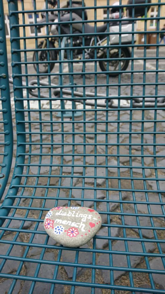 Bei einer Rast fand Volker einen Moselstein. Wir haben ihn am Fundort fotografiert und in der Jackentasche nach bis nach Zittau in Sachsen mitgenommen. Dazu später mehr. |
