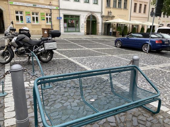 Unserem Bauch gönnten wir Kaffee und Kuchen und freuten uns darüber, dass wir diese Mahlzeit im Freien genießen konnten. Es hat gerade mal nicht geregnet. Auch in dieser Stadt haben wir brav unsere Parktickets gezogen. Preise wie für Autos. Noch ärgerlicher war der Umstand, dass es nicht für jedes Motorrad einen eigenen Parkplätz gab. OK, dann keinen überflüssigen Cent in diesem Ort lassen und diese Erfahrung schön weitertragen. Ist hiermit geschehen. Merke, Saarschleife und Rothenburg ob der Tauber, motorradfeindliche Parksituation! |