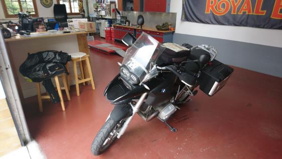 Bevor wir richtig starten konnten mussten wir erstmal Volkers Motorrad aus der Werkstatt abholen. Volker stand in engem Kontakt mit der Werkstatt. Der Reifen wurde von einem anderen Händler nach Zittau geliefert und zeitnah eingebaut. Nach dem Frühstück konnte Bernd Volker und seine Sidebags zur Werkstatt fahren. Dann kam er zurück, holte sein eigenes Gepäck und uns am Hotel ab. |