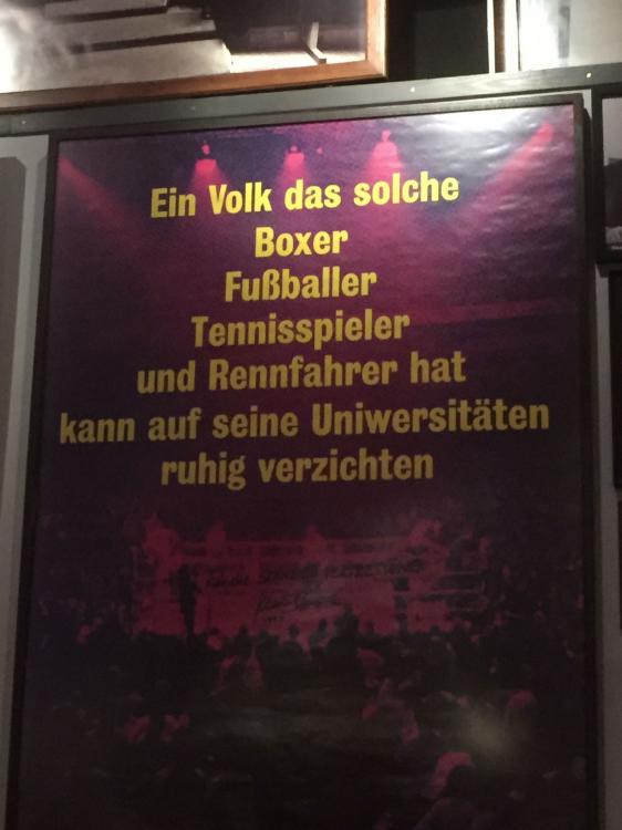 Doch leider hat hier nur das Preis- Leistungsverhältnis gestimmt. Vorausgesetzt man hat für ein geiles Gebinde einen höheren Betrag in der Tasche transportiert und benötigt davon nun nur einen kleinen Teil für den rudimentären Befriedigungsansatz mit warmen, braunen Wasser und einem trockene Stück Kuchen. |